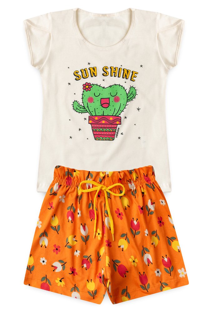 CONJUNTO MENINA BLUSINHA MEIA MALHA E SHORTS SUEDE MODAL