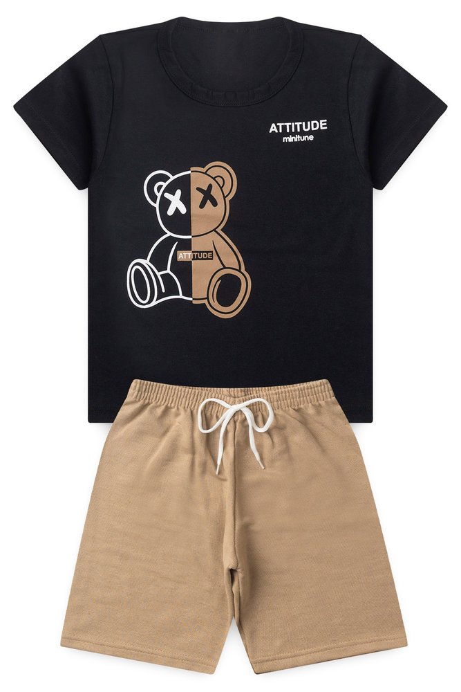 CONJUNTO MENINO CAMISETA MEIA MALHA E BERMUDA MOLETINHO