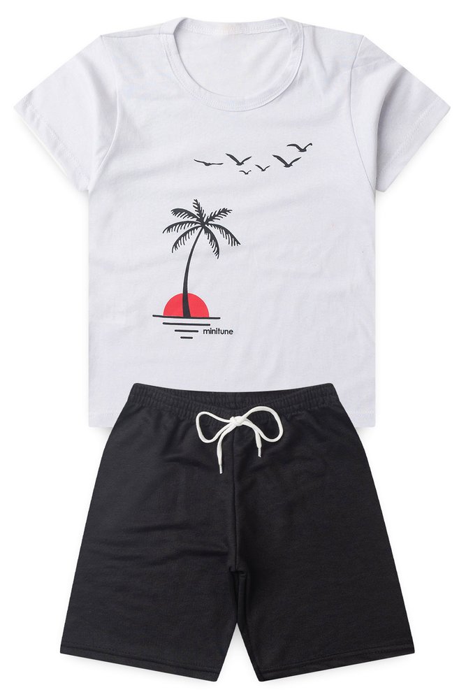 CONJUNTO MENINO CAMISETA MEIA MALHA E BERMUDA MOLETINHO