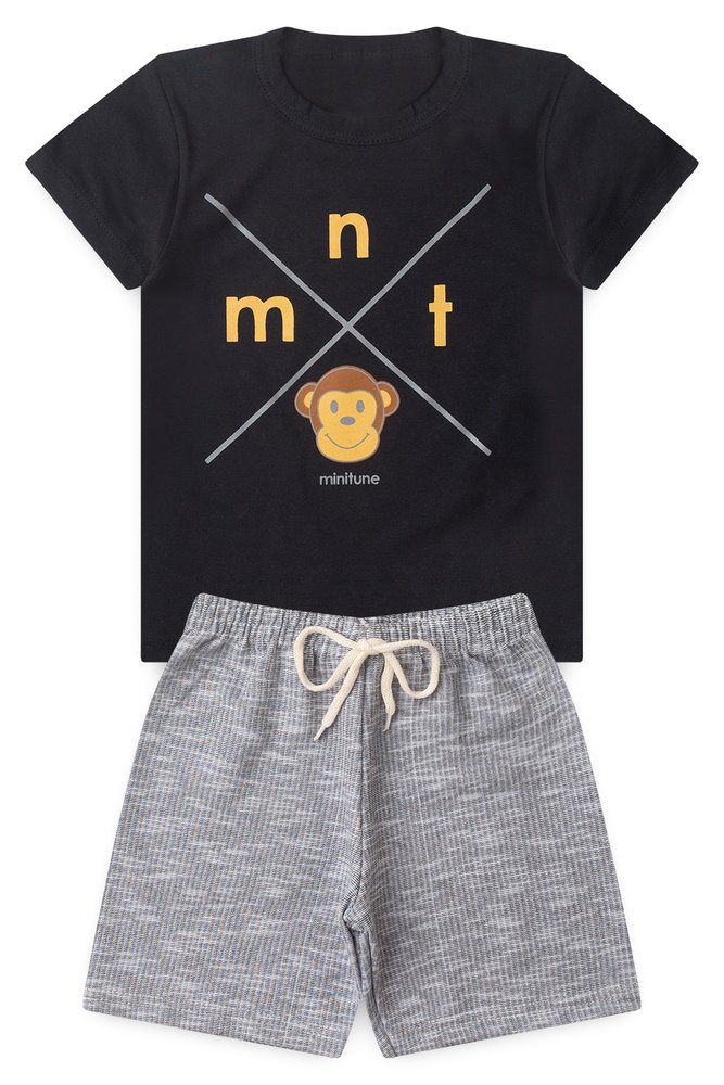 CONJUNTO MENINO CAMISETA MEIA MALHA E BERMUDA MOLETINHO