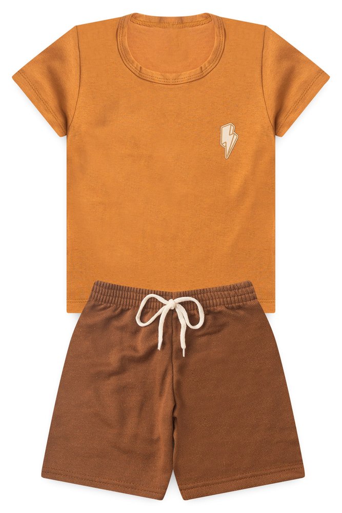 CONJUNTO MENINO CAMISETA MEIA MALHA E BERMUDA MOLETINHO