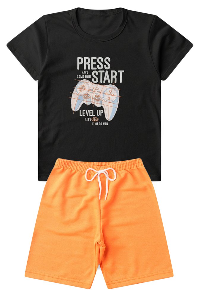CONJUNTO MENINO CAMISETA MEIA MALHA E BERMUDA MOLETINHO